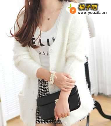 4绵绵毛衣外套,很温暖的一件开衫毛衣。拉毛毛线,毛绒绒的手感,柔软的质地,舒适的面料,亲肤又保暖。横向螺纹针编织,紧密厚实,无论是质量还是做工都是很精细的。简洁大方的款式,大V领设计.