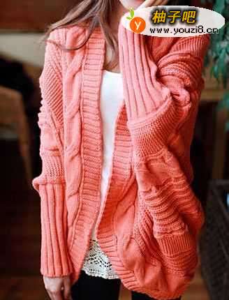 毛衣蝙蝠开衫披肩外套,超有明星范的一款外套,粗毛线针织,粗麻花编织图案,宽松的款式,披肩式,搭配不脚裤,显瘦哦。