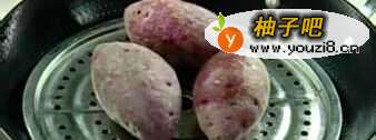 第一步,首先在锅中放入小半锅清水,再放入蒸烧架,将紫薯放在上面,盖上锅盖蒸30分钟。