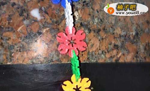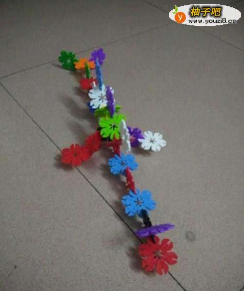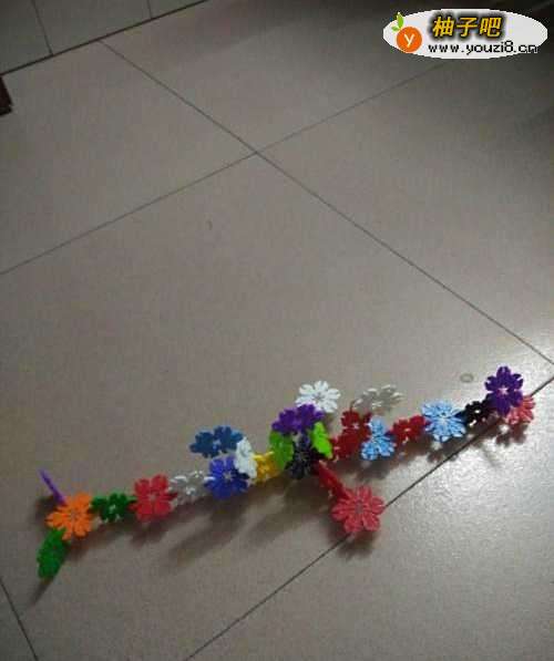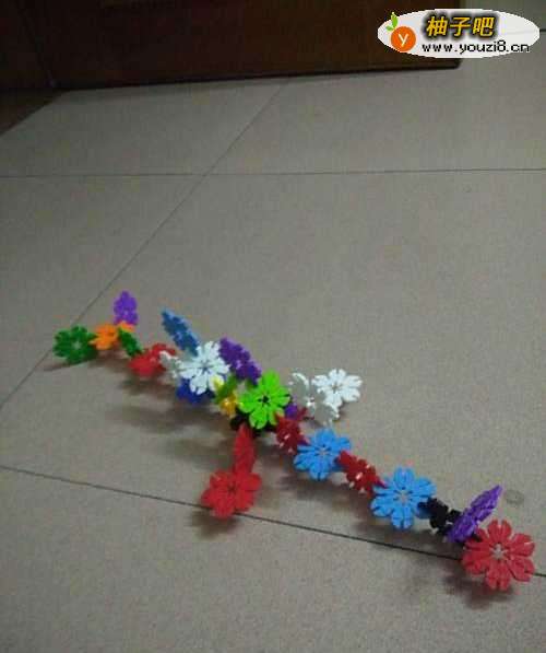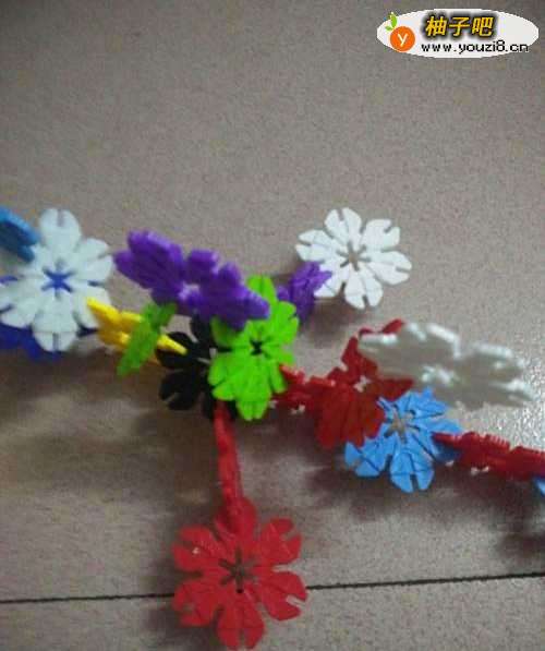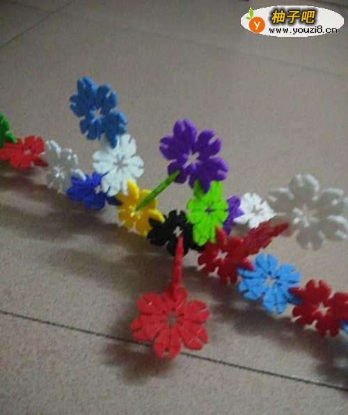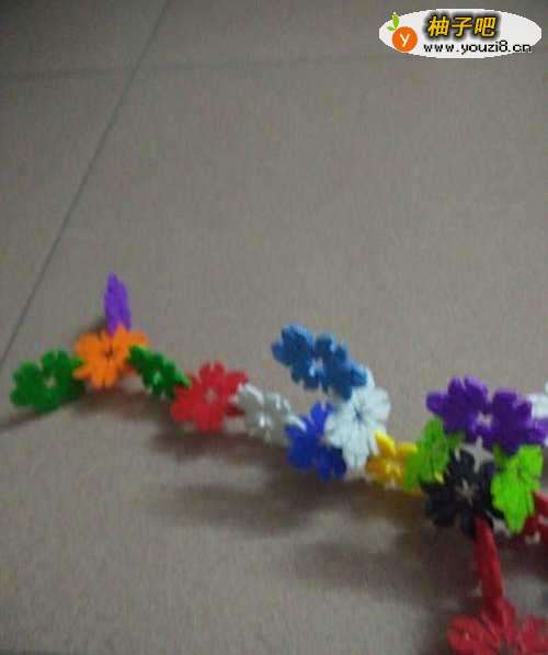 用雪花片一片一片交错的连接起来,大概10多个组成鱼的身体。
