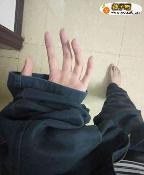 7第四步:左边也用同样的方法,抓着裤脚弯腰通过。