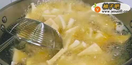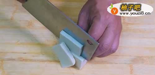 33、锅中倒入适量的水,水烧开后将千叶豆腐放入锅中焯10秒左右捞出。(也可以用油将千叶豆腐煎至双面金黄,我为了避免食用过多的油,所以改为水焯)
