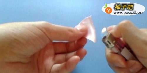 5烧出心形,然后白色丝带也要用同样方法做,然后缝到不织布上。
