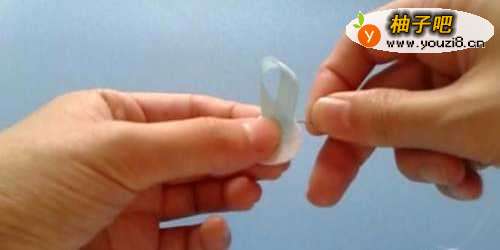 2然后如图折叠玫瑰,固定低端,记得要把多余部分剪掉。
