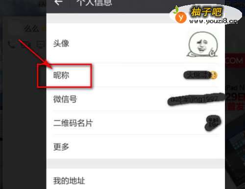 3如图示例,点击头像一栏,开始给微信昵称添加表情符。