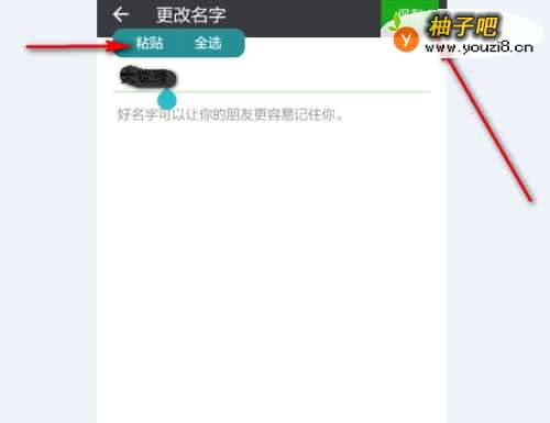 5如图示例,把表情符给粘贴到昵称输入框里面,然后保存即可完成。