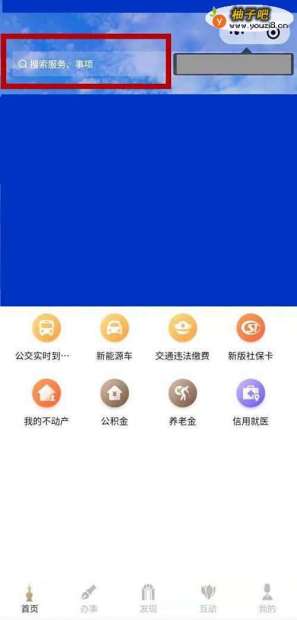 3进入随申办,注册登录后点击搜索,如图红色文本框: