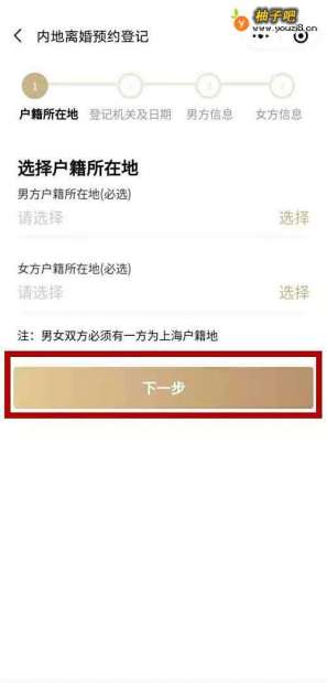 7输入男女方身份信息,完成上海离婚预约登记,如图红色文本框: