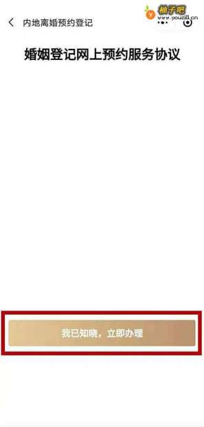 6阅读协议,点击我已知晓,立即办理,如图红色文本框: