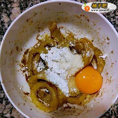 2腌制好后加入一个鸡蛋,少许面粉、少许食用油拌匀成糊状即可。(当然我这一步比较懒,哈哈……不过也不是不可以啊)