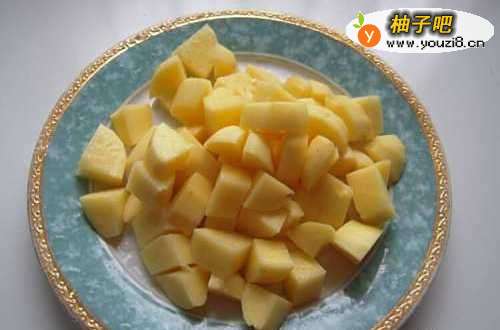 5煮至汤汁浓稠,放入土豆块煮熟,加入青红椒片,煮至断生,即可关火食用。