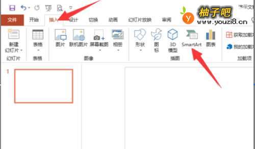 1先打开电脑,打开ppt,之后点击插入。然后点击SmartArt。