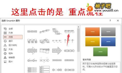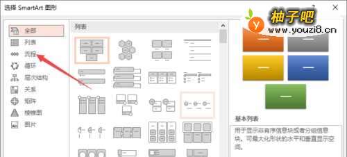 22之后点击流程。弹出的界面,我们就可以看到里面有很多流程图的选项了。这里我们可以点击选择基本流程;
