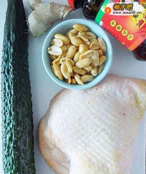 8将黄瓜垫在盘中,浇上一半的香辣油,再把切好的鸡块放在盘中,浇上剩余的香辣油,撒上白芝麻和花生即可。
