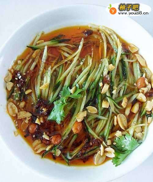 7加入生抽,白糖,鸡精,香醋,调和均匀,黄瓜洗净切丝。