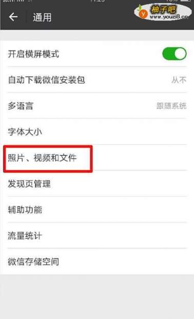 3接着在【通用】这一界面点击打开【照片、视频和文件】这一选项。