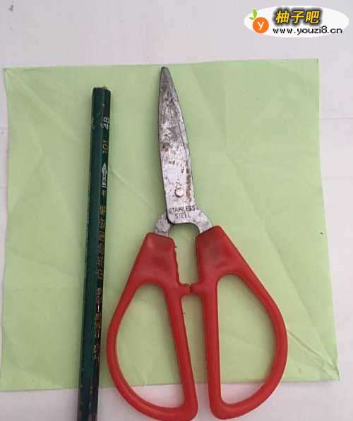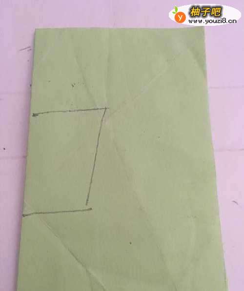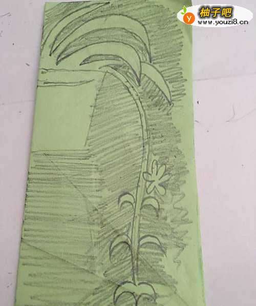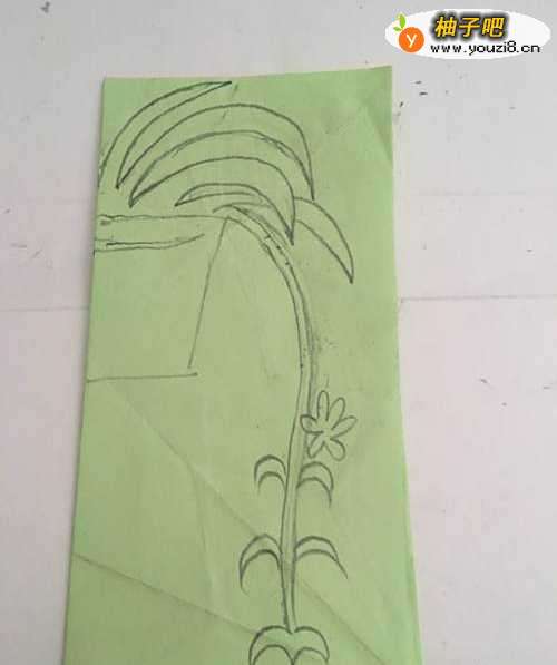 2第二步 折叠完之后竖起来 双边在左 拿起绘图铅笔 先画上一个小花盆