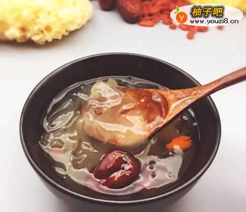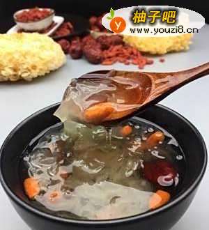 4熬制1个多小时后会出胶,比较粘稠后下枸杞熬煮几分钟,根据自己口味调整甜度。(但也不能太甜,对身体也不好)