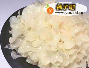 2银耳冰糖加适量水一起下锅,沸腾后转中小火。(水量一定要控制好)