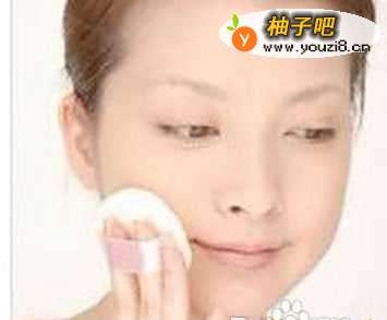 待粉底液快干的时候,用粉扑沾两下散粉扑在脸上,特别是T区和油脂分泌较多的眼睛下面要多扑一点。