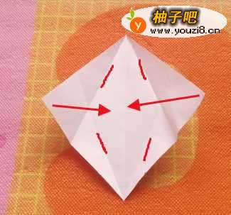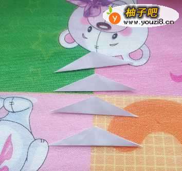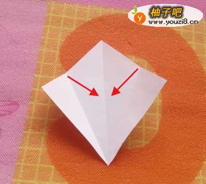 10都到最里边后,将箭头下的角向上折,一个压一个的折。