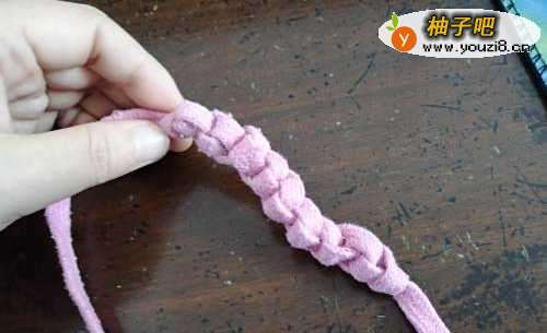 6我们就这样来回的穿过去,然后再拉紧。根据自己的手腕长度,按上接头就可以了。