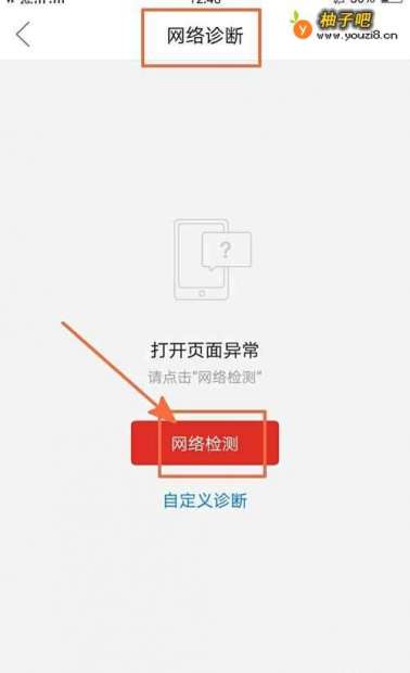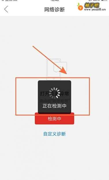 5这时进入到网络诊断页面,点击红色按钮网络检测;