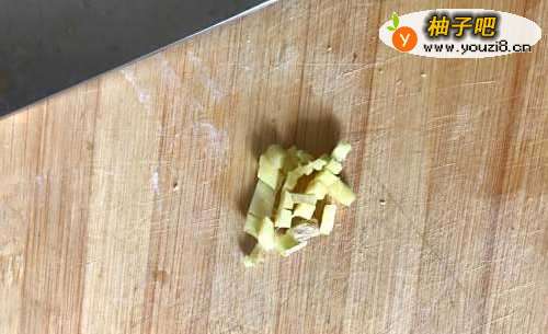 2选取新鲜的姜和葱,将姜切成丁,将葱切成葱花,备用。