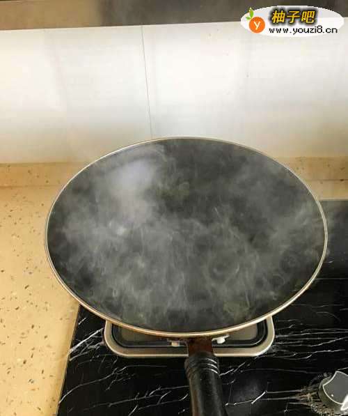 3打开煤气灶,在锅子里倒入适量的食用油,加热到开始冒烟了,就可以准备下锅了。