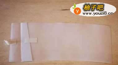 将一张较大可粘贴白纸一端用双面胶贴在透明杯子上。