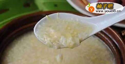 椰丝糯米粑是海南常见的小吃。主料是用糯米粉做皮,填以新鲜椰肉丝、芝麻、碾碎的炒花生、白糖等配成的馅,以椰子树叶包成5厘米左右大小的圆粑,蒸熟趁热吃。此粑糍而不腻,清甜可口。风味独具特色。中医认为,椰肉味甘,性平,具有补益脾胃、杀虫消疳的功效;椰汁味甘,性温,有生津、利水等功能。这些物质具有补充机体营养、美容、防治皮肤病的作用。