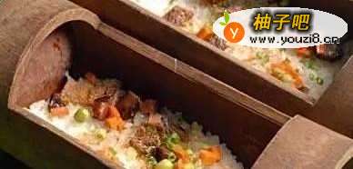 海南黎族传统美食。是用新鲜竹筒装着大米及味料烤熟的饭食。黎族人多于山区野外制作或在家里用木炭烤制。现经烹调师在传统基础上改进提高,使之摆上宴席餐桌,声誉甚高,成为海南著名风味美食。竹筒饭竹节青翠,米饭酱黄,香气飘逸,柔韧透口。吃时,饮一口黎家“山兰酒”,咬一小口竹简饭,慢品细嚼,趣味盎然。