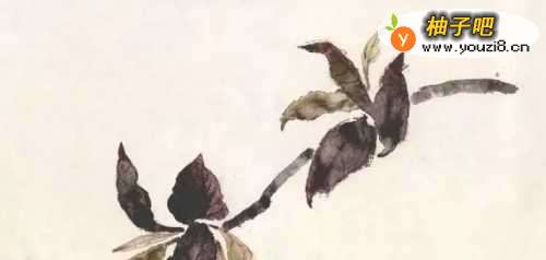 4勾筋法:对于一些小叶片的植物,可以用点的手法来画叶,以墨与色表现叶片的虚实究竟,最后勾画叶脉。勾筋的作用是“破”,打破叶片的过分平淡,因此叶脉组织可繁可简,要视点画叶子的笔触效果而定,所用墨色深浅也要与叶色相协调。勾画叶脉的线要松动一些,也就是虚勾多一些,同时还要注意叶有侧、正之分,因此勾叶筋时就不能一概地平分叶面,要根据叶子的正侧俯仰之状,相应地改变线条的分布和走向。