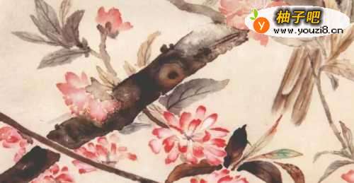 5.枝干画法积水、积色法画枝干:一般木本花卉枝干高大,且多有纹理丰富的老枝干,如玉兰、海棠、桃花、牡丹、梨花等。先备以花青、赭石、石绿等土桥村,再用较浓的墨画出小枝,接着画中干、老干,画时要一气呵成,可以边画边滴入适当的清水,避免局部墨色干透。趁颜色未干之时,根据枝干的物理结构 ,注入含水分较高的赭石和石绿,在必要时还可继续滴入清水,冲开墨和色,或者用笔吸走一些水分,以控制墨色的变化。注意前后枝干结合处留白而不碰接,以免渗化而含混不清。待干后,水色相撞,自然成趣,渍出斑驳的肌理效果。