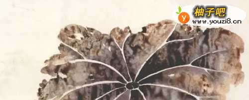 3叶的画法留筋法:对于像荷叶、芭蕉、蒲葵等植物的大片叶,可以采用留筋的画法来表现。亦即靠水线与水线之间的留白形成叶筋,最后再提线勾出叶筋来,也可以不勾提。画时要注意叶筋留白的来龙去脉,要合乎叶片的物态走向,并注意收尾处的虚实处理。