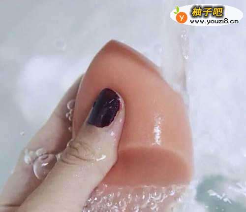 3浸泡完后,把彩妆蛋用手把水分拧干