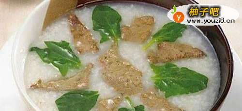 【制法】猪肝切细,与米煮粥,熟时打入鸡蛋,加盐、姜、味精调味,稍煮即可。