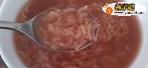 【原料】桑椹罐头50克,糯米100克,冰糖适量。