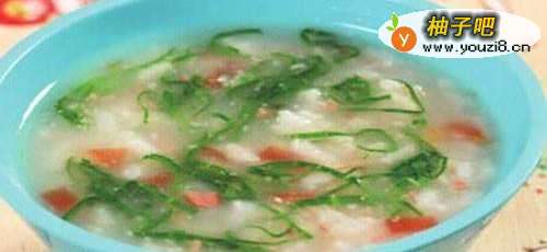 【原料】猪肝50克,鸡蛋1个,粳米50克,盐、姜、味精少许。