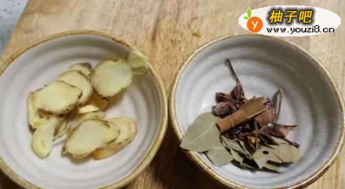 首先,将姜切片,准备好八角,香叶,桂皮;