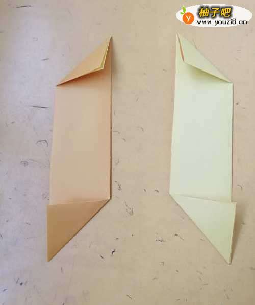 2对折,然后在另一张纸重复,如图摆放,开口朝向左边。