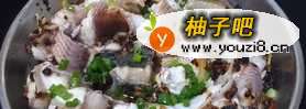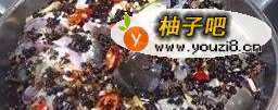 3把白鳝绕圈盘在盘中,将混和豉汁用小勺淋在鳝面,撒上姜丝、红辣椒。