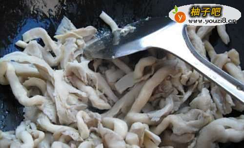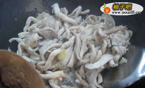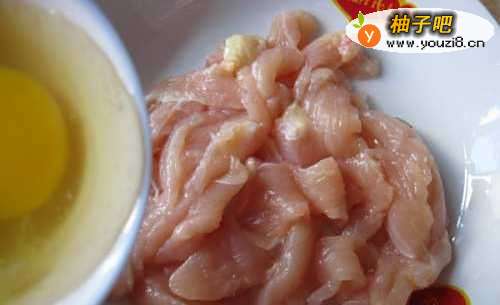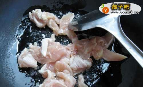 5锅中放底油,小火滑溜鸡片
