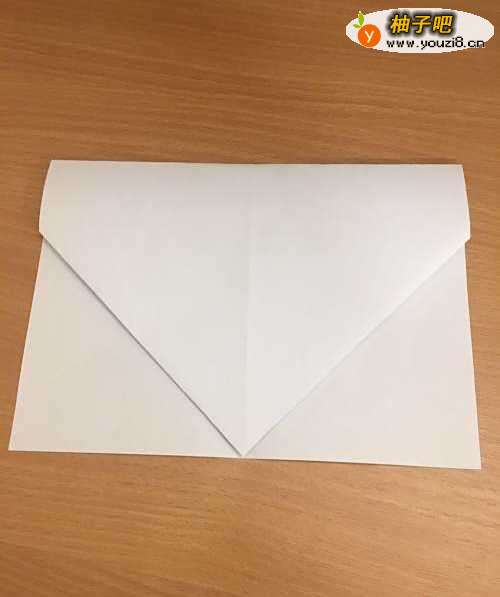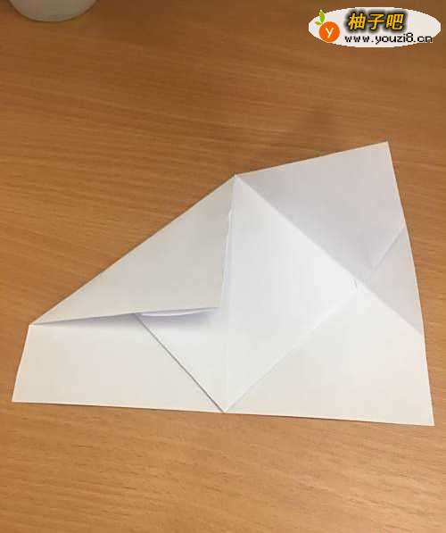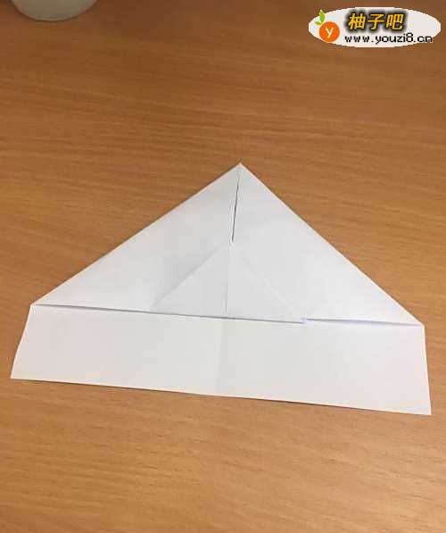 第一步,同常规的纸飞机步骤一样,两个角向内翻折。建议先折一条中线,方便左右对齐。