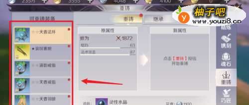 4在“重铸”选项界面左侧选择需要重铸的装备。