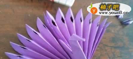 6然后打开中间,涂上胶水,把孔雀的身子放在中间粘好。
