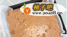 6烤盘铺油纸,倒入糊糊,可以撒点白芝麻