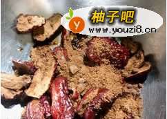 2蒸好的红枣捣烂(喜欢吃起来有果肉感的可以不捣烂)加入糖混合。