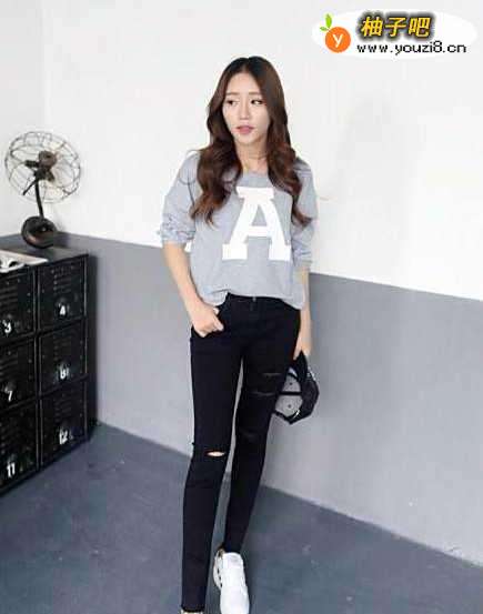 搭配三:浅灰色T恤浅灰色T恤是我们夏季各种颜色T恤中经常出现的,搭配一条黑色九分裤是很洋气的小姐姐。