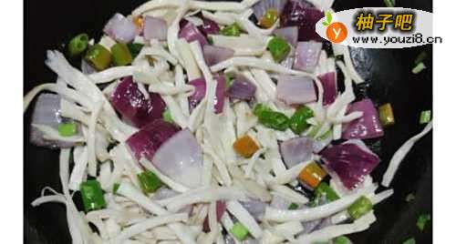 6翻炒出盘。